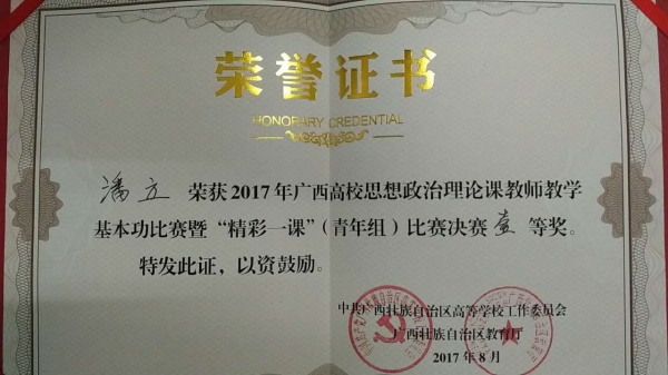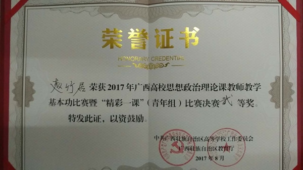 8月30日,2017年广西高校思想政治理论课教师教学基本功暨“精彩一课”比赛在广西大学马克思主义学院落下帷幕。鸭脖潘立老师荣获青年组一等奖、赵竹君老师荣获青年组二等奖。
