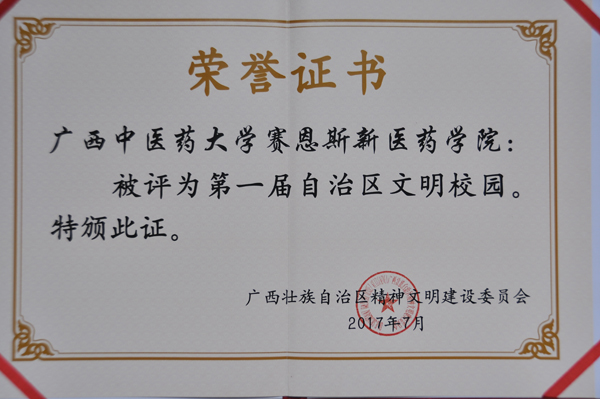 赛恩斯新医药学院被评为“第一届自治区文明校园”