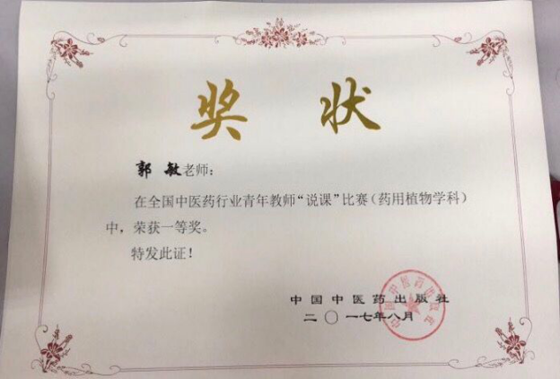药学院郭敏荣获第一届全国中医药行业青年教师“说课”比赛一等奖