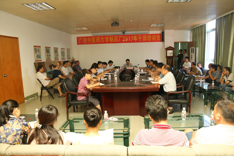 制药厂2017年干部培训班于9月12日开班,学校副校长庞宇舟教授应邀出席并作讲话,制药厂党委书记、厂长何天富,党委副书记、纪委书记彭定基,副厂长陈洪涛、覃明雄、吴玉强,副处级调研员张义欢及厂党委委员、中层干部、班组长、各党支部委员、工会委员等近70人参加了此次培训。培训班开班由彭定基主持。