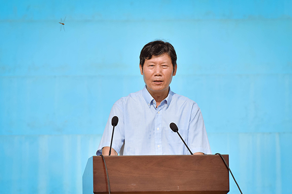 瞿胜雄表示,同学们在军训中吃苦耐劳、严于律己、顽强拼搏、表现出色。希望通过此次军训,同学们能普遍增强体质,磨练自己的意志,锻炼抗挫品质,培养团队协作精神。接着新生军训代表武宏伟同学也做了发言,他表示军训让他受益匪浅,他将在以后的学习中继续发扬军人精神,好学习,做一名合格的大学生。