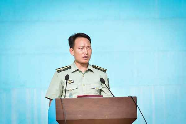 中国人民解放军南宁警备区民兵应急营副营长瞿胜雄讲话