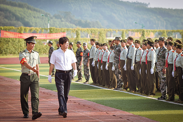 领导检阅军训方队