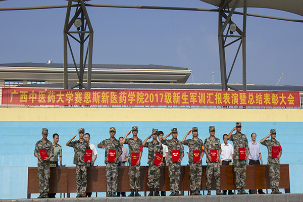赛恩斯新医药学院举行2017级新生军训汇报表演暨总结表彰大会