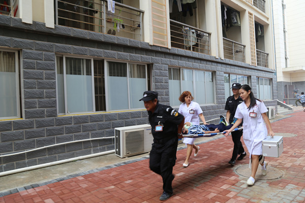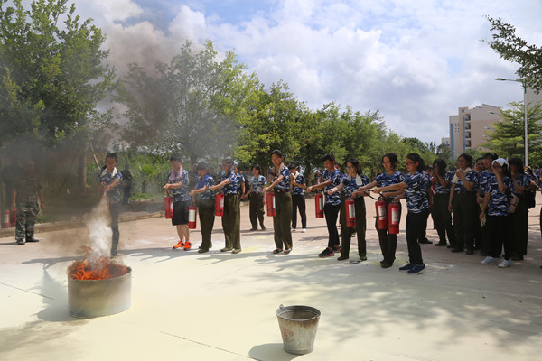 随后,与会学生结合讲座内容,在武装保卫部老师的指导下,进行了紧急疏散逃生和灭火器使用等科目演练。