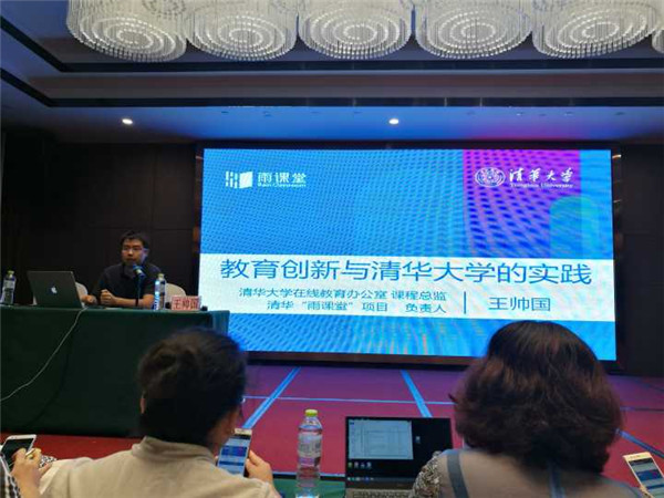 23 日的工作坊围绕“在线课程的结构与特征”、“在线课程的设计与运营”和“混合式教学与翻转课堂”三个专题进行。王帅国老师向参会教师介绍了在互联网+的背景下,教学模式、教学理念的转变以及慕课设计与翻转课堂在清华大学的实践,与大家分享了在线课程制作的步骤,为教师改变教学模式提供了指引。