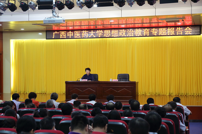范晓莉为师生们解读了习近平总书记“7.26”重要讲话精神,强调意识形态工作的极端重要性;介绍了十八大以来广西意识形态和宣传思想文化工作的相关情况,同时对学校意识形态工作提出了要求,勉励大家要坚定理想信念、自觉维护意识形态安全,自觉把个人的理想追求融入到国家和民族的事业中,在为社会做贡献的同时实现人生价值。范晓莉的报告如师者传道授业解惑,深入浅出,娓娓道来。