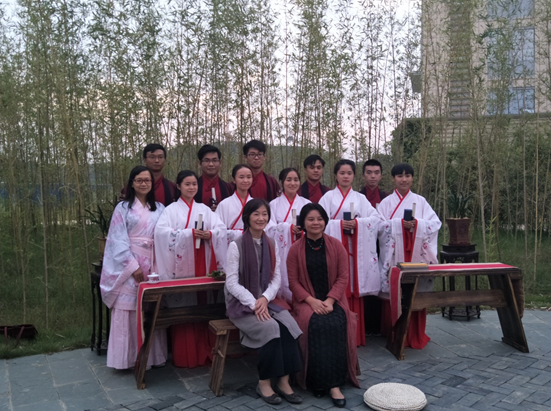 讲座结束后,兰风古琴社全体社员在学校竹林间举行了传统拜师仪式。朱行涛、刘布谷两位老师还对兰风古琴社进行了现场琴技指导。