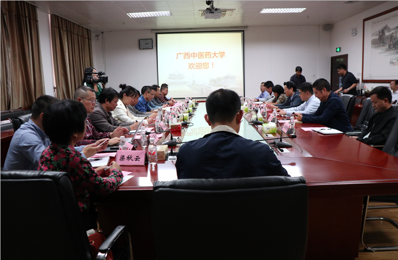 在仙葫校区第一会议室召开的座谈会上,学校庞宇舟副校长,校办、瑶医药学院、成果转化与社会服务处、科技处、高职院、第一附属医院等相关负责人参加了座谈,庞宇舟主持座谈会。