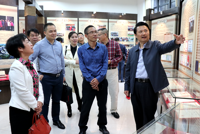 11月8日下午,都安瑶族自治县党委常委、宣传部部长、副县长梁锋一行到到鸭脖就共建养生养老产品研发基地、瑶族养生文化特色小镇等方面考察。