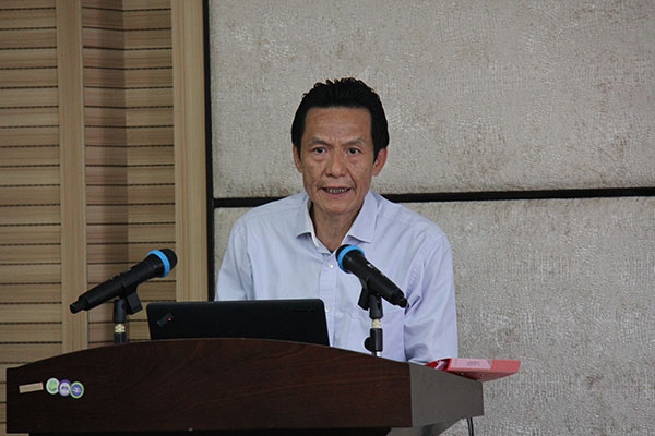 赛恩斯新医药学院副书记、副院长冼锦华做报告