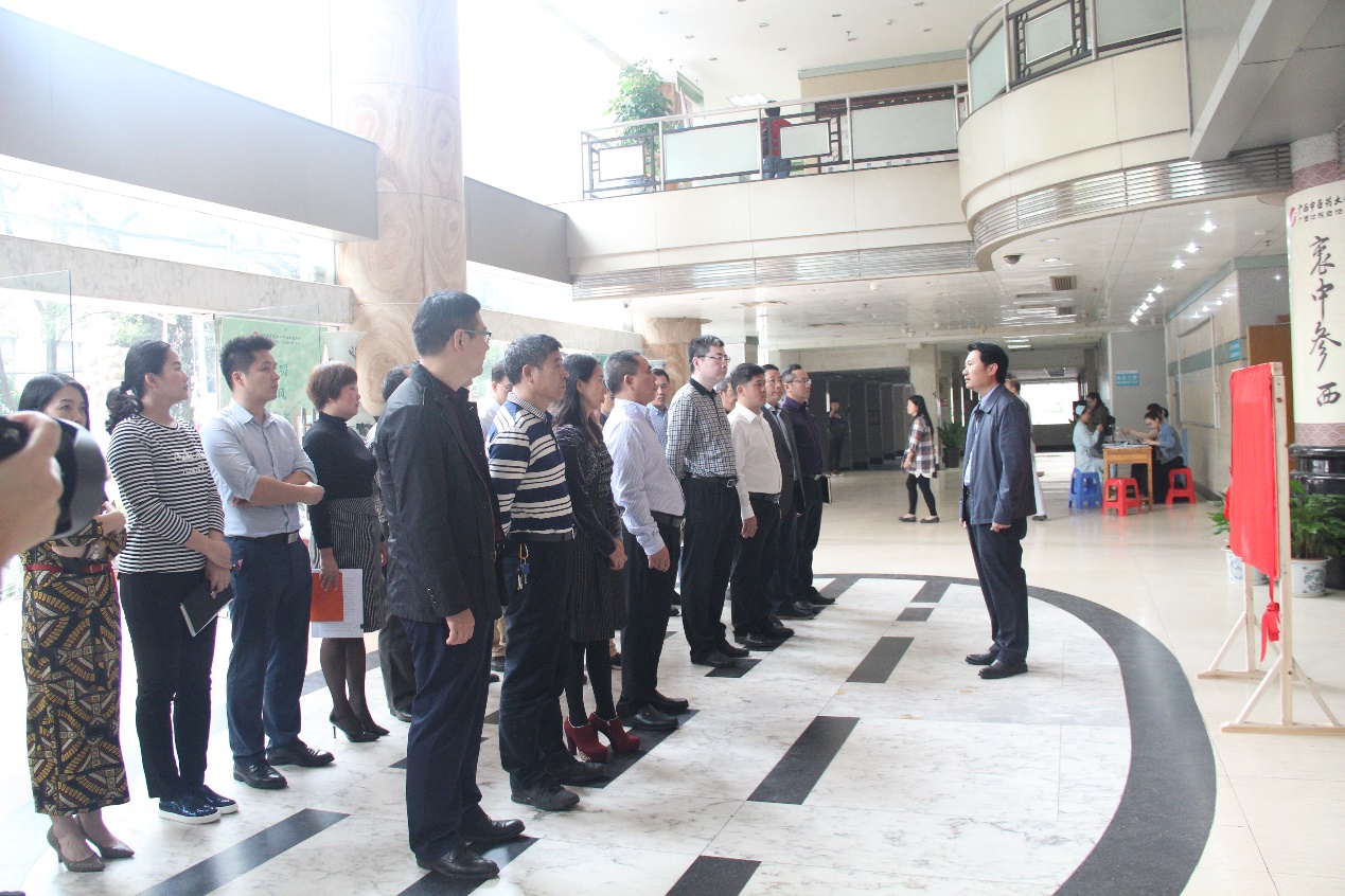 11 月 10 日上午,“ 广西壮瑶药工程技术研究中心医院制剂研发分中心 ”揭牌仪式在瑞康医院举行。学校副校长庞宇舟、校办主任黄龙坚、广西壮瑶药工程技术研究中心常务副主任赵立春等一行 4 人,瑞康医院院长唐友明,党委书记高宏君,党委副书记、副院长陈日兰,党委副书记、纪委书记黄建民、副院长庞刚、韦思尊,及医院药物研发中心、医务部、护理部等相关职能部门负责人参加了揭牌仪式。