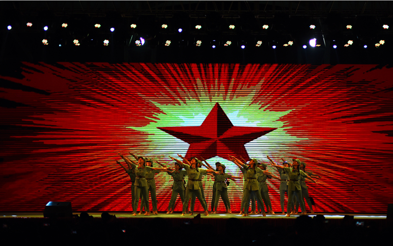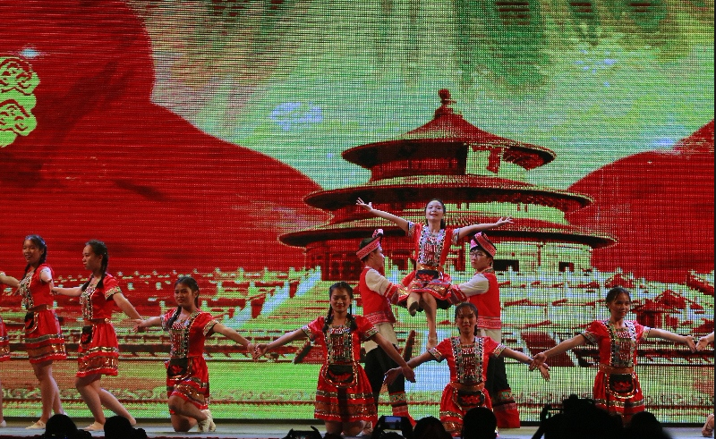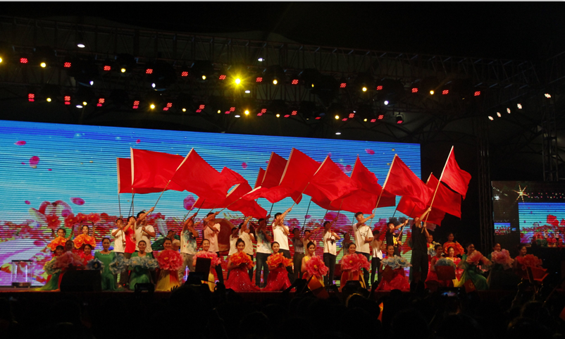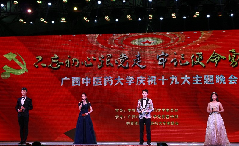 晚会在大屏幕的倒计时中,由鼓声响彻云霄的鼓点声引燃整场的氛围!校艺术团带来了气势磅礴的舞蹈《黄河赞》,他们优美的舞姿完美地再现了流经万年仍滔滔不绝,汹涌澎湃的黄河景观,展现了一个勃勃生机,蒸蒸日上的伟大民族的良好精神风貌。由瑞康医学院带来的经典朗诵《青春中国》以及由校艺术团与壮医药学院带来的《红歌串烧》深情地表达了他们对历史英魂的敬佩和对党的热爱,将会场气氛推向了高潮。第一临床医学院别出心裁,从身边的党员着手,为我们带来了情景舞蹈《我身边的共产党员》,积极响应了向张广秀同志学习的号召。精彩的节目纷至沓来,赛恩斯新医药学院带来的演唱《Rolling in the deep》、校艺术团带来的舞蹈《月亮海》、合唱《我和我的祖国,壮乡情》再次掀起了晚会高潮,由退伍军人和药学院共同带来的表演《强军战歌》向在场的所有人展现了我国共产党军人应有的精神风貌与鸭脖青年的蓬勃朝气,赢得了阵阵掌声。兰风古琴社带来的演奏《神人畅》,校广播站、礼仪队带来的朗诵《今天我们这样爱国》,高职院带来的节目《新的天地》,它们或演绎,或吟诵,或歌舞,所有的形式都表现着他们对明天美好的向往,对党,对祖国的美好祝愿。
