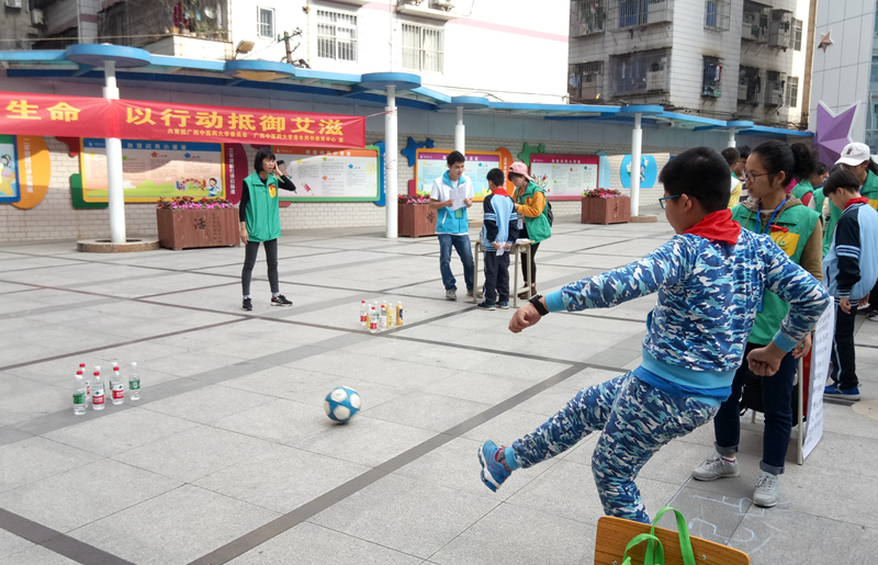为了让“艾”在阳光下,向“零”艾滋迈进,鸭脖青年同伴教育中心组织35名志愿者于11月28日下午走进南宁市青秀区园湖路小学,为学校五、六年级950名学生开展青春健康及艾滋病防治游园活动,提高学生对于艾滋病的认知和培养小学生对青春健康知识和艾滋病防治的能力。