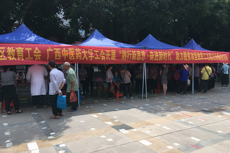 为积极发挥高校人才优势和智力优势,为贫困地区职工群众提供优质有效的公共服务,提升高校工会联系服务职工群众的能力水平,在助力打赢脱贫攻坚战中展现新作为, 5月21日至23日,鸭脖工会常务副主席李欢澄、一附院工会常务副主席张海英组织专家组一行8人在自治区总工会副主席、教育工会主席周健带领下,与区内5所高校工会组成的工作队,赴东兰县开展“践行新思想●奋进新时代”助力脱贫攻坚教职工志愿服务活动。