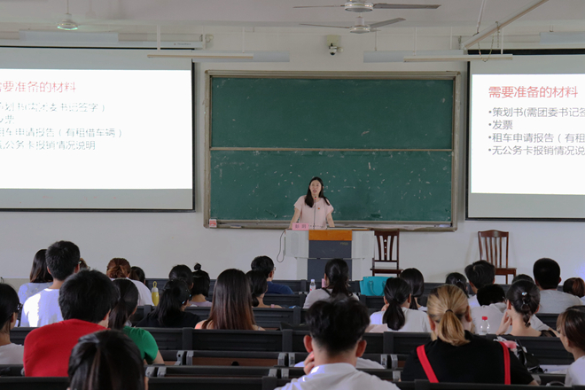 为更好开展2018年暑期社会实践活动,6月19日,由校团委办公室主任、社会实践部部长(合署)陈晓东,组织部、青年工作部(合署)部长彭玥主讲的2018年暑期社会实践培训会在鸭脖仙葫校区1-201举行,成功立项的暑期社会实践团队人员参与本次讲座。