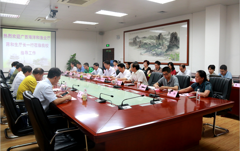 6月29日,广西海洋和渔业厅蒋和生厅长一行7人到鸭脖就海洋药物产业开发等工作进行调研指导。鸭脖党委书记尤剑鹏,副书记庞宇舟、何并文,副校长戴铭,海洋药物研究院院长刘永宏及其团队成员,校内海洋药物研究专家代表以及学校相关部门负责人参加了调研汇报会。汇报会由庞宇舟主持。