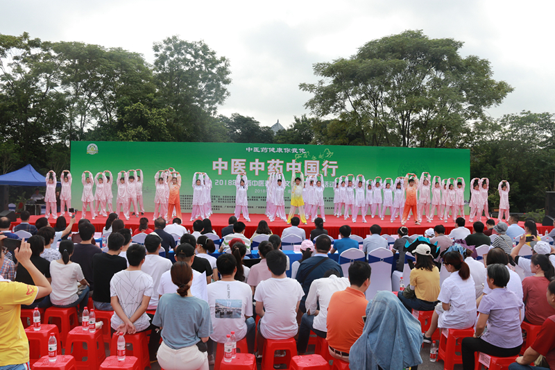 鸭脖大学生在启动仪式上展示中医药养生健体功法