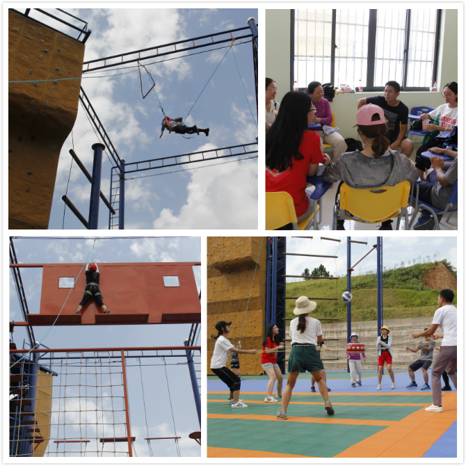 活动在炎炎夏日中展开,现场随机分成3队比拼,有趣的“破冰”水果蹲游戏迅速消除了彼此间的陌生感,鼓舞飞扬、团队建设、攀岩、悬崖绝壁、高空抓杠等集体项目,让教职工团员在切身体验中培养团队协作意识,提高人际交往能力,激发勇于挑战、敢于突破的斗志,充分挥集体智慧、凝聚集体力量。