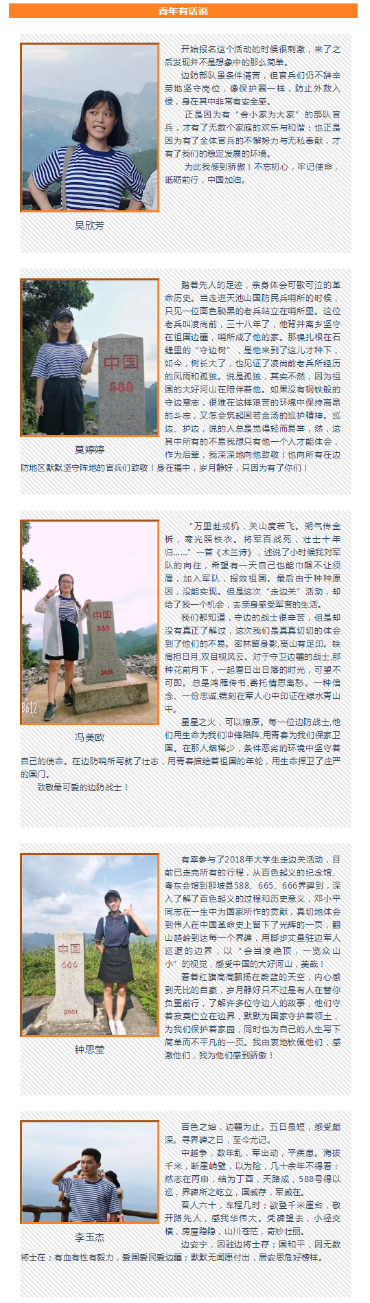 7月16日至7月20日,由自治区国防教育办、自治区边海防办主办,自治区高校工委协办的2018年大学生“走边关·到海防·进军营”主题活动圆满结束。鸭脖10名师生代表参加了此活动。