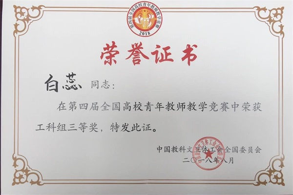 白蕊老师荣获工科组三等奖