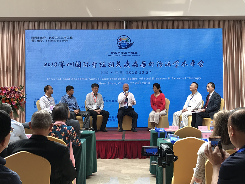 10月27日,由世界手法医学联盟与国家中医药管理局中医流派传承推广基地共同主办,深圳市中医院、广东发展中医药事业基金会等单位承办的“世界手法医学联盟2018深圳脊柱相关疾病与外治法学术年会”在深圳召开,来自中国、中国香港、中国台湾,意大利、美国、加拿大、日本、新加坡、马来西亚、菲律宾等13个国家和地区的医学同道,通过专题讲演、专题讨论、特色疗法介绍等形式,深入研讨了脊柱相关疾病与中医外治法在脊柱病的应用。