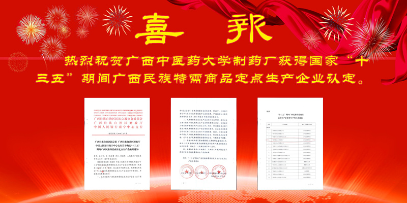 近日,广西壮族自治区民宗委下发文件通知(桂民宗发[2018]257号),根据国家民委等部委关于开展“十三五”期间全国民族特需商品定点生产企业认定工作的要求,经过组织申报、市级审核和自治区集中认定等程序,鸭脖制药厂被认定为国家“十三五”期间民族特需商品定点生产企业,被认定的企业可在名单公布之日起享受民族贸易和民族特需商品定点生产企业贷款贴息优惠政策。此民族特需商品(民族药)定点生产企业的认定,为加快鸭脖制药厂民族药产品的生产、研发及推动科技创新提供有力保障。