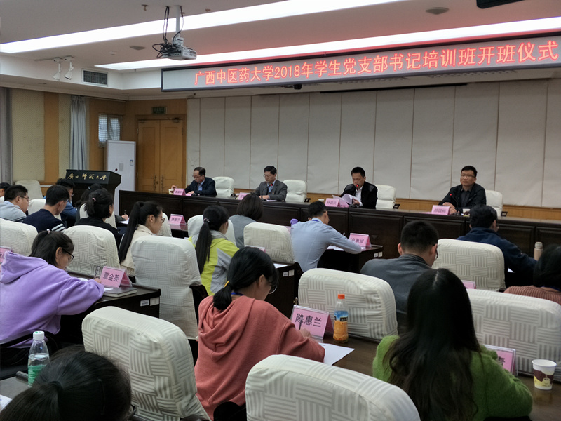为推动全面从严治党向基层延伸,推进学校党支部“强基固本”工程和“三全育人”项目,进一步提升学生党务骨干的思想政治素质和履职担当能力,校党委于11月29日至12月1日在广西师范大学举办了学生党支部书记专题培训班。鸭脖党委副书记何并文、组织部部长唐振宇、组织部副处级组织员张艳娟以及广西师范大学组织部部长林国庆、副部长郑国辉出席了开班仪式,全校59名学生党支部书记参加了培训。