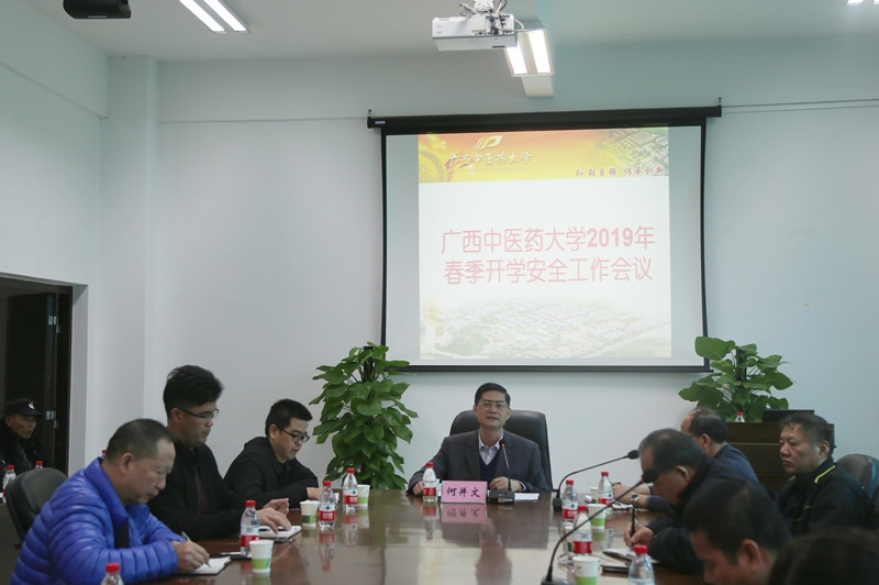 3月1日上午,学校在仙葫校区大学生活动中心三楼会议室召开2019年春季开学安保工作会议,传达 全国和全区学校安全工作电视电话会议精神,总结2018年武装保卫部工作和部署2019年校园安保工作。校党委副书记何并文出席会议并讲话,党办、武保部、朋宇组物业公司等部门领导及相关人员、保安员共50多人参加会议。