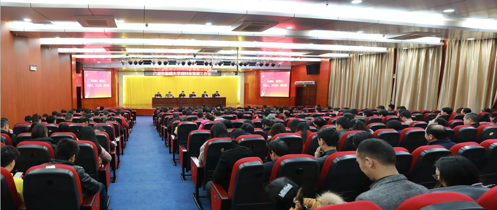 会上,尤剑鹏对学校2018年党建工作进行了全面总结,并对做好2019年党建工作进行了全面部署。尤剑鹏指出,今年是新中国成立 70 周年,是决胜全面建成小康社会、实现第一个百年奋斗目标的关键之年,是深入贯彻落实全国教育大会精神的开局之年,做好党建工作意义重大。2019年学校将重点做好以下工作:一是以“不忘初心、牢记使命” 主题教育为抓手,不断增强政治建设的自觉性和定性;二是以“基层党建质量提升计划”为重点,推动基层党建工作提档进位;三是以习近平新时代中国特色社会主义思想为核心,切实加强和改进思想政治教育和意识形态工作;四是以营造风清气正的良好政治生态和育人环境为目标,推动全面从严治党落地生根;五是以推动中心工作发展为动力,不断提升党组织在推进学校内涵式发展中的作用;六是以抓落实保稳定为根本,全力维护学校和谐稳定。