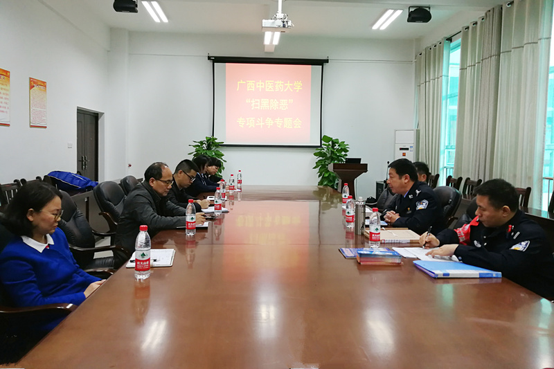 3月13日上午,鸭脖在仙葫校区大学生活动中心三楼会议室召开YABO鸭脖“扫黑除恶”专项斗争专题会议。南宁市公安局青秀分局经文保大队大队长张文超等以及学校党办、宣传部、武装保卫部、学工处、赛恩斯新药学院、朋宇物业安保公司等负责人以及有关人员参加了会议。