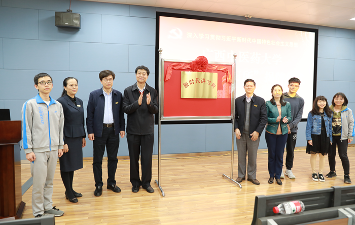 为全面学习贯彻习近平新时代中国特色社会主义思想和党的十九大精神,进一步推动学校广大师生员工学习新思想、掌握新本领、实现新发展,3月15日下午,鸭脖“新时代讲习所”在仙葫校区成立。校党委书记尤剑鹏,副书记何并文,副校长吴琪俊、冷静,纪委书记韦雪芳、学生代表共同为“新时代讲习所”揭牌。揭牌仪式由韦雪芳主持。