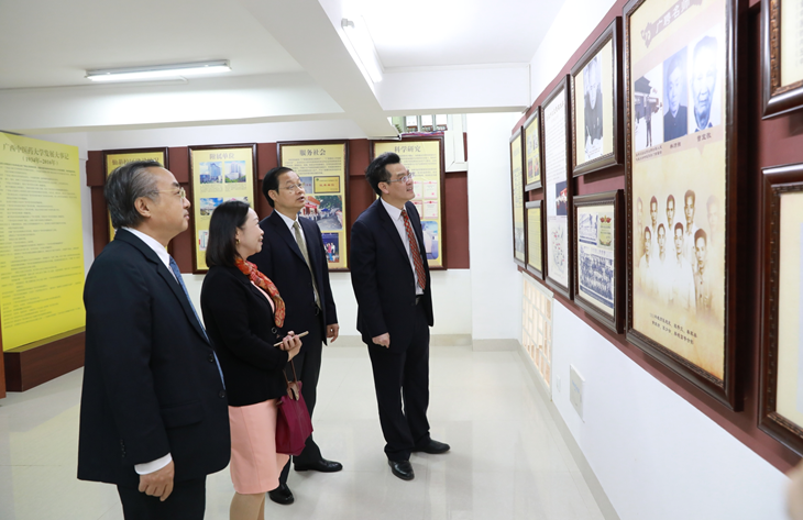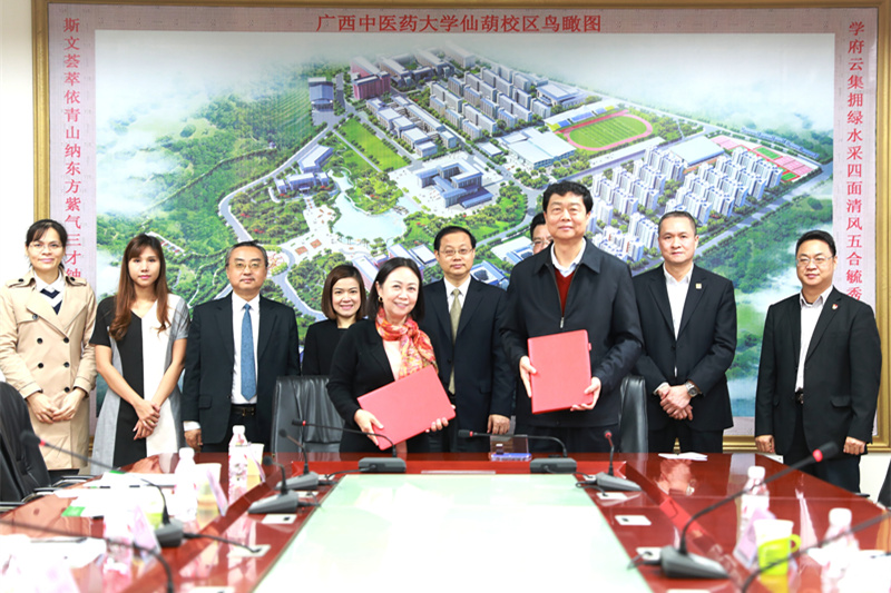 访问期间,外宾还先后参观了鸭脖晨钟暮鼓楼、壮瑶医药展厅、中医药科学实验中心等处,蓬班福校长一行对鸭脖在新校区的建设与发展、中医药文化传承以及科学建设方面取得的成就表示由衷的赞赏。当天下午,代表团一行还专门前往明秀校区留学生新大楼、第一附属医院参观座谈,考察了解实习生培养相关生活学习条件和管理方式。