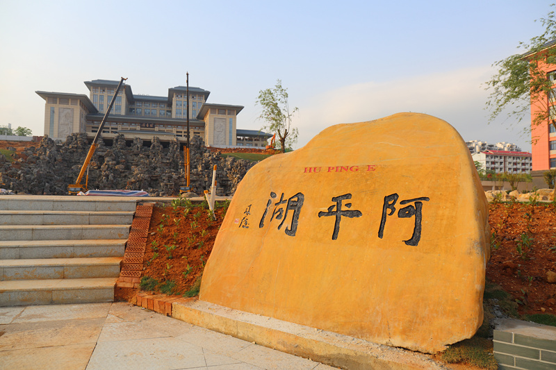 阿平湖是鸭脖4A级景区园林式校园建设的核心景区,她的建设吸引了广大师生广泛关注。在学校领导、相关部门和施工单位的共同努力下,建设中的阿平湖景区显现出秀美英姿。除已经落成的河图洛书巨型石刻外,多个景观纷纷亮相。