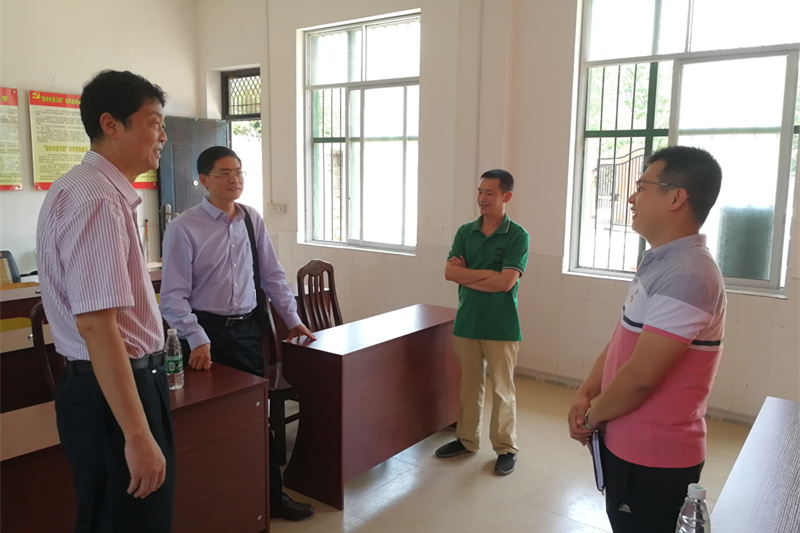 尤剑鹏、何并文一行来到都结乡念潭村,亲切看望派驻该村的第一书记吴汉周,听取了吴汉周关于念潭村扶贫工作汇报,走访了种桑养蚕基地,对吴汉周的工作给予了充分肯定。尤剑鹏指出,群众饮用水设备的维护以及水源的保护要建立长效机制,即使驻村第一书记扶贫工作结束后,也能让群众用上干净的水;村集体经济要实现可持续发展,就要探索发展村集体的支柱产业,让群众真正过上幸福生活。他表示,学校和附属医院将会进一步当好“第一书记”的坚强后盾,把派驻村作为服务基层的窗口,全力支持驻村“第一书记”开展工作,紧跟国家政策将扶贫工作落到实处,杜绝当地群众返贫现象的出现,达到让组织满意、让群众满意的目标,为打赢脱贫攻坚战做出应有贡献。