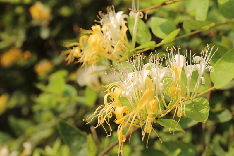 金银花 ,正名为忍冬,多年生的半常绿、缠绕木质藤本植物“金银花”一名出自《本草纲目》,由于忍冬花初开为白色,后转为黄色,因此得名金银花。金银花自古被誉为清热解毒的良药,它性甘寒气芳香,甘寒清热而不伤胃,芳香透达又可祛邪。金银花既能宣散风热,还善清解血毒,用于各种热性病,如身热、发疹、发斑、热毒疮痈、咽喉肿痛等症,均效果显著。