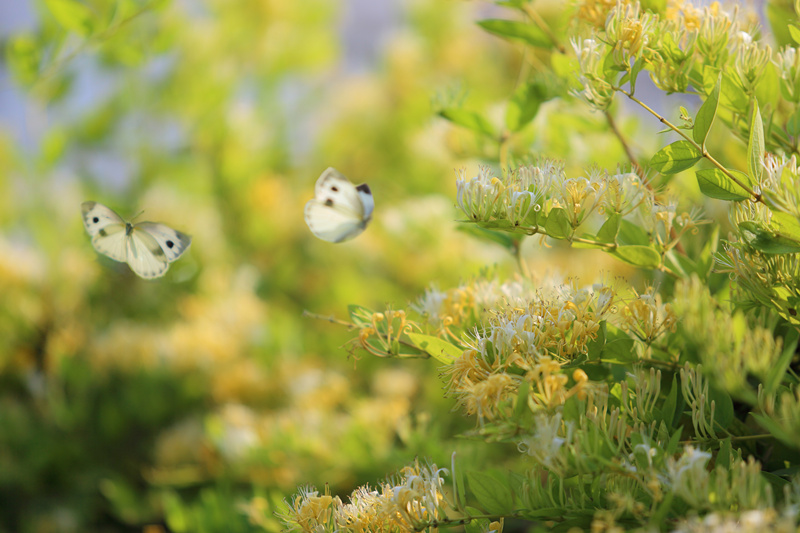 最美校园四月天 五味林旁金银花怒放