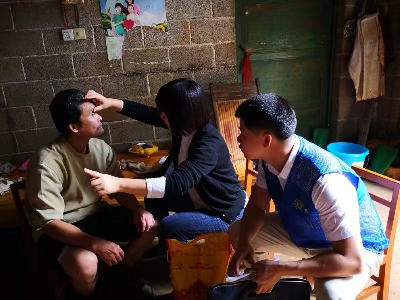 党的十八大以后,党中央将精准扶贫、脱贫攻坚工作提升至治国理政的新高度,零有东和他所在的布泉乡就是国家脱贫攻坚战略的受益者。根据自治区的统一安排部署,2018年,YABO鸭脖选派附属瑞康医院药物研发中心李金荣同志到布泉乡新盏村担任第一书记。作为后援单位,瑞康医院中层干部陆续来到布泉乡开展“一帮一联”工作。2018年10月底,李金荣同志带领“一帮一联”帮扶责任人深入村屯,探望慰问新盏村帮扶对象时,瑞康医院医保科科长卢银波惊讶地发现,零有东双眼无神,需要扶摸着墙和家具才能走到客厅坐下。