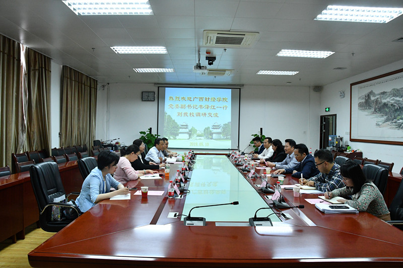 5月10日上午,广西财经学院党委副书记韦泽红一行6人到鸭脖调研交流。学校党委副书记庞宇舟、总会计师何刚亮,人事处处长黄燕、副处长宋业成及相关科室人员参加调研座谈。