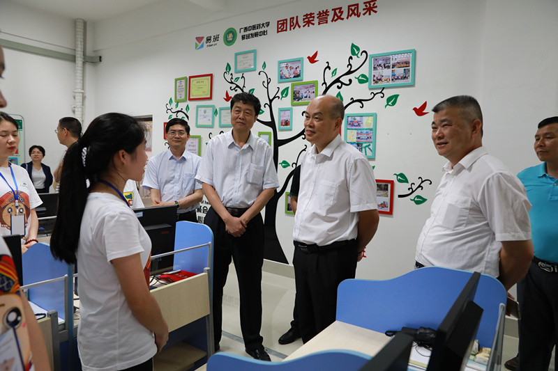 卢景辉一行还实地参观了鸭脖仙葫校区晨钟暮鼓楼、医圣广场、阿平湖、壮医药办学成果展厅、瑶医药文化展厅、科学实验中心、海洋药物研究院以及易班工作站、大学生心理健康活动中心等,了解了鸭脖办学历史、校园文化景观、壮瑶医药理论体系、学生工作等内容。