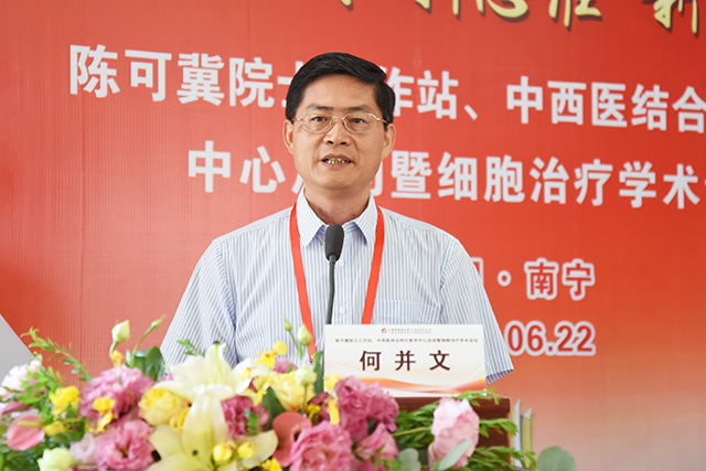 何并文对附属瑞康医院陈可冀院士工作站、中西医结合转化医学中心的启动表示热烈的祝贺,希望医院不断加强交流与合作,积极探索中西医结合的新思维、新模式、新举措,着眼于现代医学先进技术的应用及其与传统医学的优势互补,努力推动中西医结合研究成果的转化,进一步提高科研能力和临床诊治水平,为“一带一路”中医药事业的传承与发展做出应有的贡献。