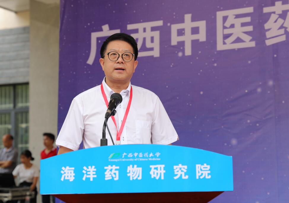 庞宇舟在致辞中介绍了学校历史沿革、发展情况以及海洋药物研究院的筹备、发展情况。庞宇舟指出,学校引进刘永宏研究员及其团队成员组建海洋药物研究院以来,在研究院建设、研究方向、对外合作等方面取得了很好的成绩,希望研究院以求真务实的作风,锐意进取,科学规划,加强科技创新平台建设,扎实开展研究,推进科技创新,力争早出成果、多出成果、出好成果,把研究院建设成为国内知名、区域一流的海洋药物研究机构,为学校的中药学博士点构建和中药学一流学科建设提供坚实支持。