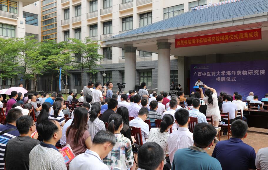 揭牌仪式上,蒋和生、庞宇舟、戴铭、黎甲文、张士军、焦炳华、谭仁祥、刘永宏等为海洋药物研究院揭牌。