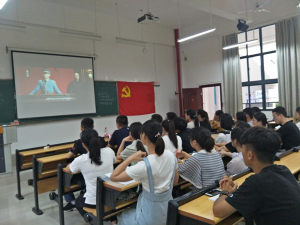 学工一支部书记宋南带领学生党员们观看建党伟业,重温中国共产党建党的艰难历史,学习老一辈共产党员开拓奋进、志存高远的精神。