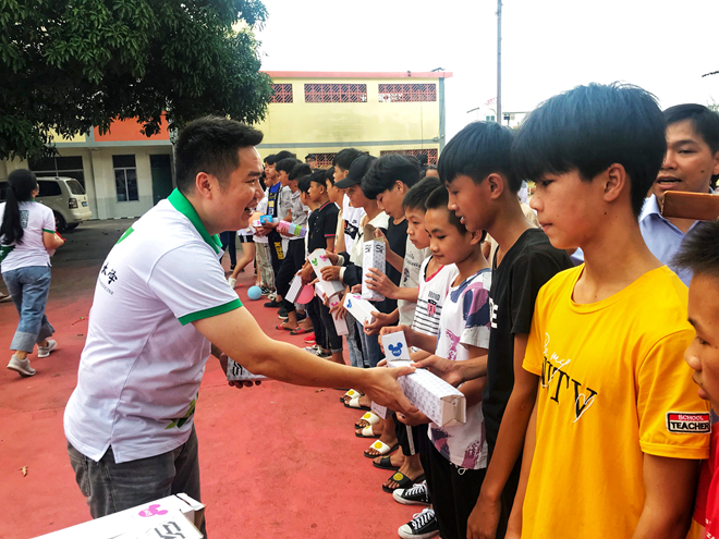 随后实践团队来到了叫安镇初中、叫安镇中心小学开展以“激情青春志,共筑新时代”为主题的关爱留守儿童活动。队员们与小朋友们在操场上奔跑,嬉闹,并向小朋友赠送自己带来的书包、羽毛球、篮球等学习及锻炼用品。