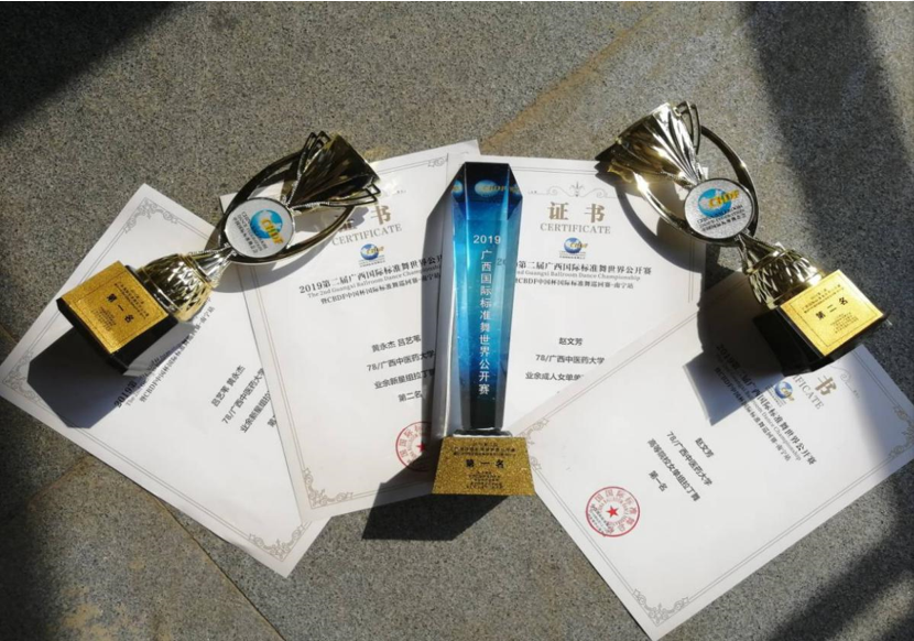 2018年第一届广西国际标准舞世界公开赛中鸭脖的20名选手参与的团体舞《杏林舞韵》获得团体舞一等奖与女子单人单项伦巴第一名。