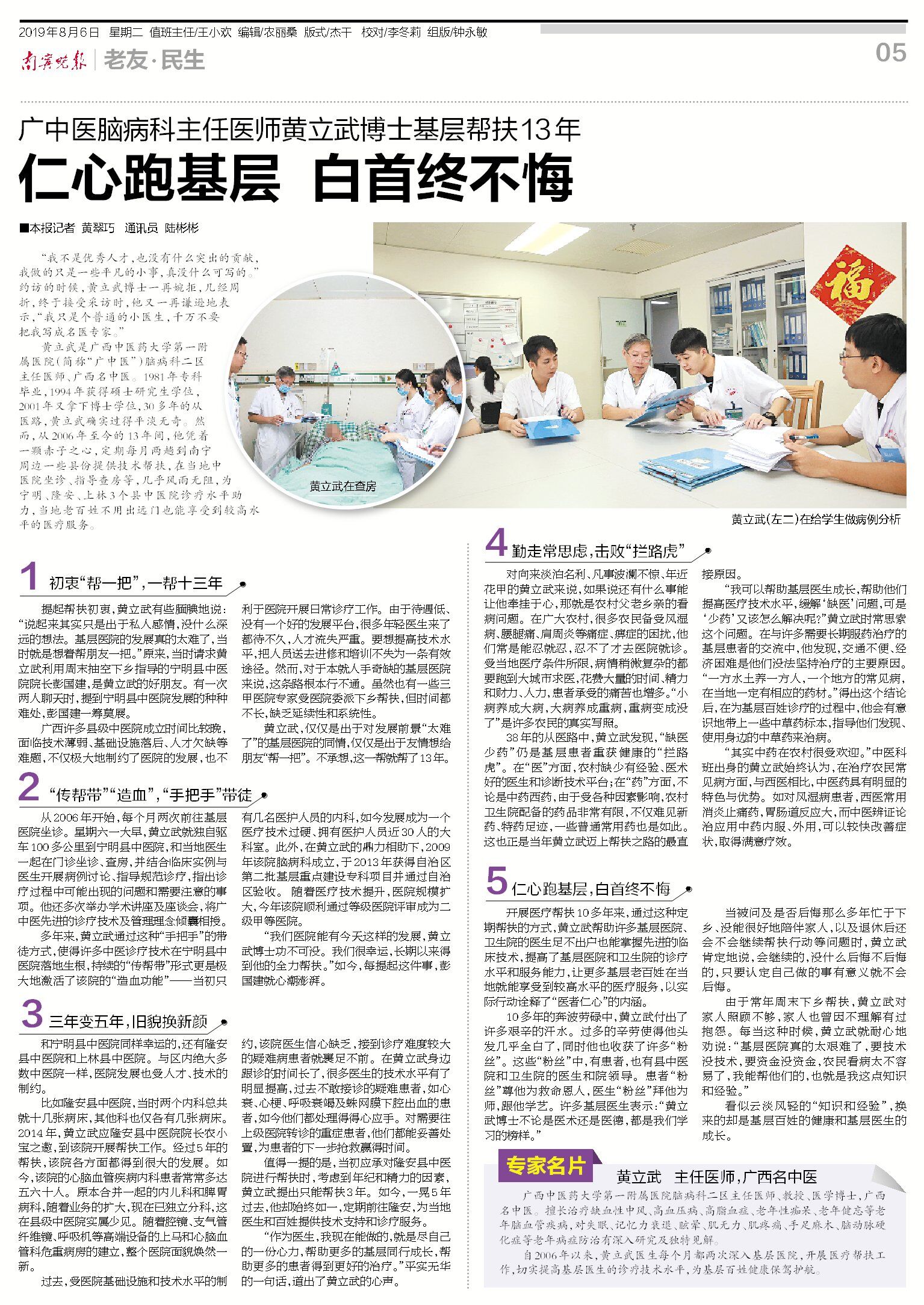 南宁晚报:广中医脑病科主任医师黄立武博士基层帮扶13年 仁心跑基层白首终不悔