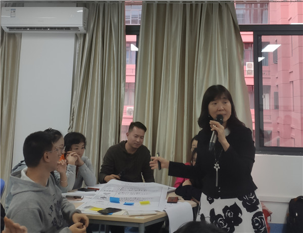 王秀槐教授通过原理讲授、案例分析、小组讨论、小组展示及成果分享,将讲授、设计与体验巧妙地融合,让参加工作坊的每位教师分组进行现场实作,开动脑筋,体会学中做、做中学,并进行思考回馈。工作坊内容充实、气氛活跃,参与学习的教师们都表示对工作坊体会深切,收获颇多。