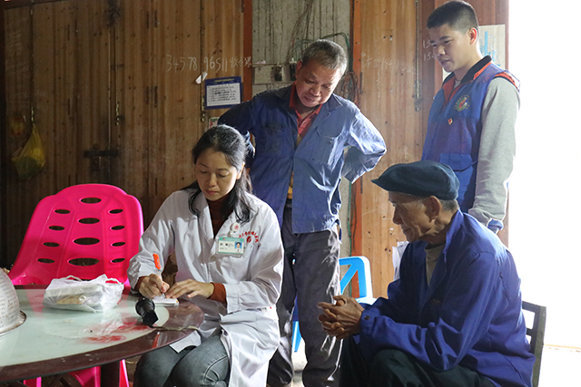 党的十八大以后,全国吹响了脱贫攻坚战的冲锋号,根据自治区的统一安排部署,2018年,YABO鸭脖选派附属瑞康医院药物研发中心的李金荣到隆安县布泉乡新盏村担任第一书记。因病致贫、因病返贫是隆安县布泉乡贫困的主要因素之一,李书记充分发挥了背靠单位医疗资源优势,在学校和医院党委的指导和支持下,医院多次带队前往布泉乡,开展"不忘初心、牢记使命"健康扶贫义诊活动,送医送药上门,精准帮扶助30年眼疾老乡重见光明,不忘带领村民攻坚脱贫的初心、牢记驻村第一书记使命。驻村第一书记,既是光荣,也是使命,更是担当。