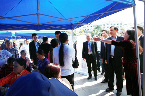参加“2019年中国—东盟传统医药健康旅游国际论坛”的有关领导嘉宾也来到活动现场慰问了医护和演职人员,参观了广西中医药事业发展成就展板。